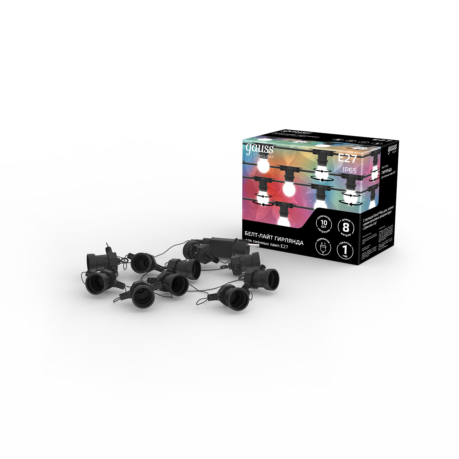 Использование оригинальных средств для привлечения внимания дало толчок к развитию различных технических разработок, основным предназначением которых ранее было лишь украшение отдельных элементов сооружений. Гирлянда Белт Лайт c возможностью подключения ламп представляет собой гибкий проводящий шлейф со специальными патронами для светодиодных ламп цоколя E27. Она подойдет для подсветки и оформления новогодних елок, мостов, эстакад, зданий, стадионов к празднику! При этом вы можете подобрать любые лампы, которые вам понравятся. Сделайте праздник ярче вместе с Gauss