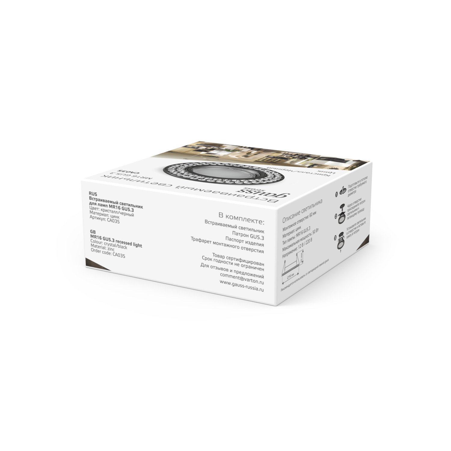 Точечные встраиваемые светильники Gauss – отличное решение для освещения жилых помещений. Широкий модельный ряд позволит подобрать светильник под любой интерьер. С помощью точечных светильников Gauss можно придать неповторимый стиль некоммерческому помещению, и использовать его, как для основного, так и для дополнительного освещения. Удобный и простой монтаж позволит установить светильник даже не обладая специальными навыками.